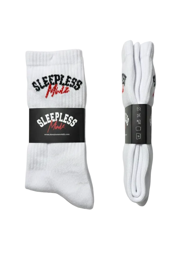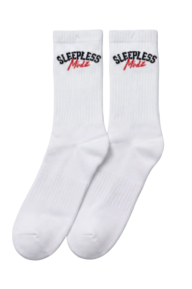 A pair of premium white crew socks featuring our Varsity logo.